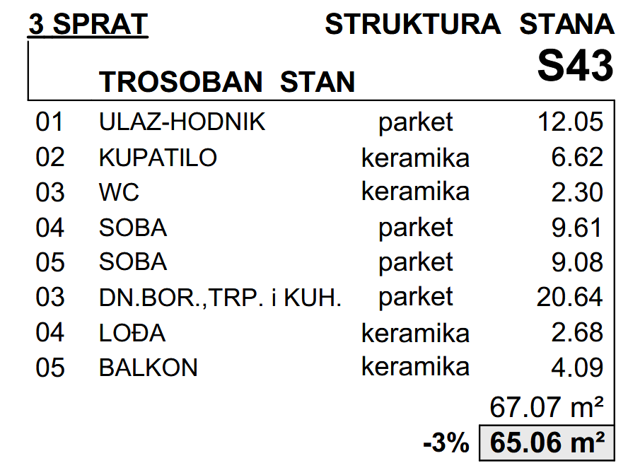 Na prodaju trosoban stan od 67,07 m2 u okviru našeg novog projekta na Telepu, na adresi Somborska 43-47 u Novom Sadu.